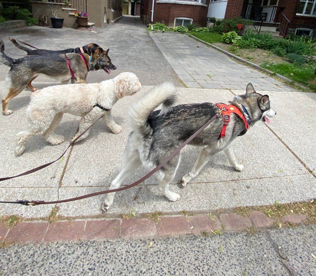 We like to keep our groups small (2-4 dogs at a time). Depending on location, your pup will enjoy a 1 hour on-leash walk or a 1 hour romp around an off-leash dog park in the area.